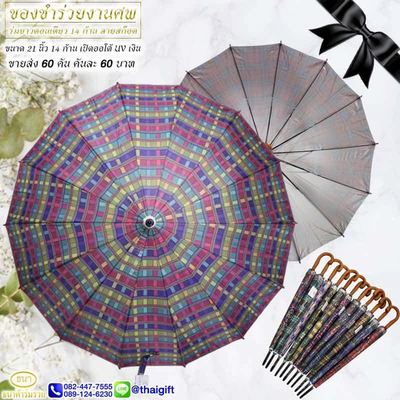 ของชำร่วยงานศพ ร่มยาวตอนเดียว ลายสก๊อต ชมพู