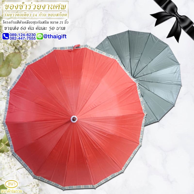 ของชำร่วยงานศพ ร่มยาวตอนเดียว ขอบลายสก๊อต ส้ม