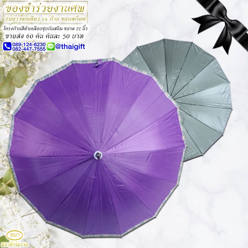 ของชำร่วยงานศพ ร่มยาวตอนเดียว ขอบลายสก๊อต ม่วง