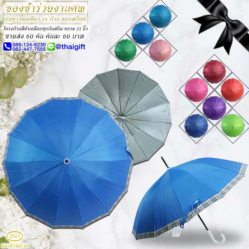 ของชำร่วยงานศพ ร่มยาวตอนเดียว ขอบลายสก๊อต ฟ้า