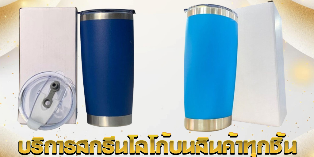 เรามีบริการสกรีนโลโก้หรือติดสติ๊กเกอร์บนสินค้าทุกชิ้น ช่วยเพิ่มความเป็นเอกลักษณ์และจดจำได้ง่าย เหมาะสำหรับทุกโอกาสพิเศษของคุณ
